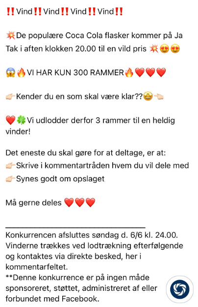 Før du udgiver selve Ja Tak tilbuddet, laver du et opslag med en konkurrence, der referer til at der snart kommer et Ja Tak tilbud.