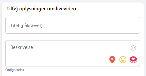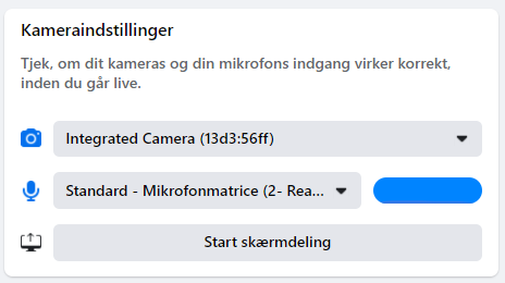 Du skal udfylde titel og beskrivelse samt vælge kamera og mikrofon.